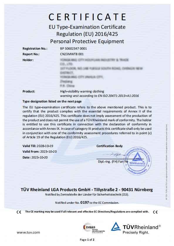 Q2- သင်၏ Safety Reflective Warning Vests များသည် EU နှင့် US လုံခြုံရေးစံနှုန်းများနှင့် ကိုက်ညီပါသလား။