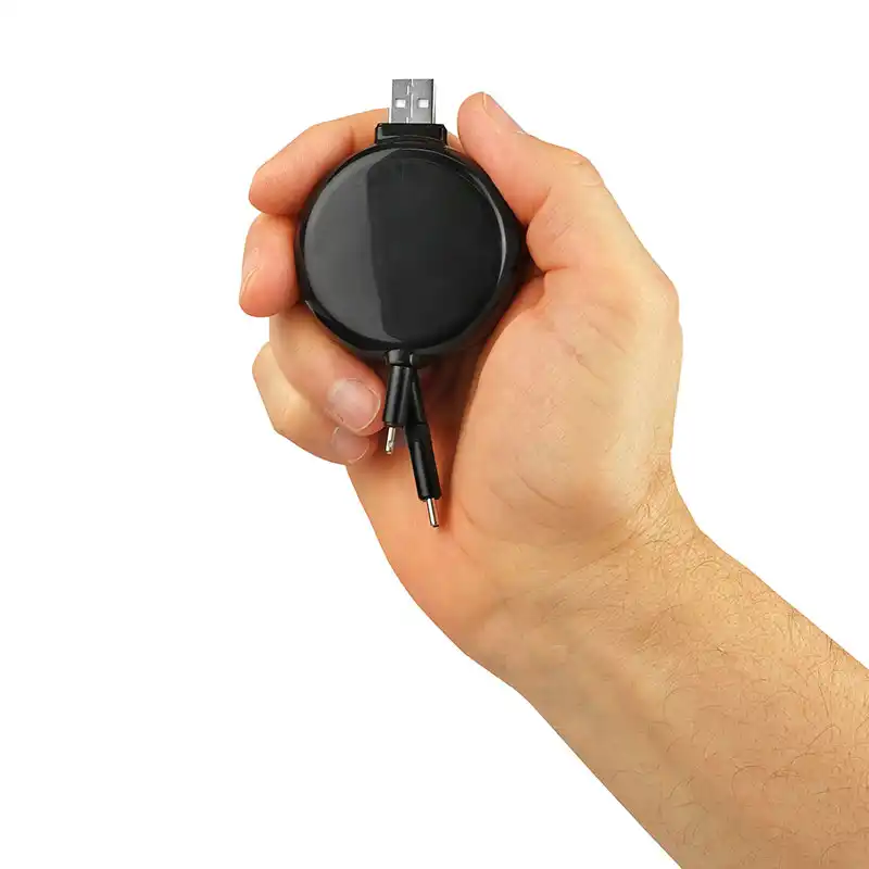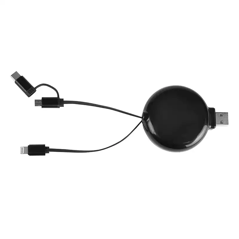စွယ်စုံရ 3-in-1 ဖြေရှင်းချက်သည် အမြင့်ဆုံးလိုက်ဖက်ညီမှုအတွက် ရုပ်သိမ်းနိုင်သော reel တစ်ခုတည်းတွင် Lightning၊ Micro-USB နှင့် USB-C ချိတ်ဆက်မှုများပါ၀င်သည်။