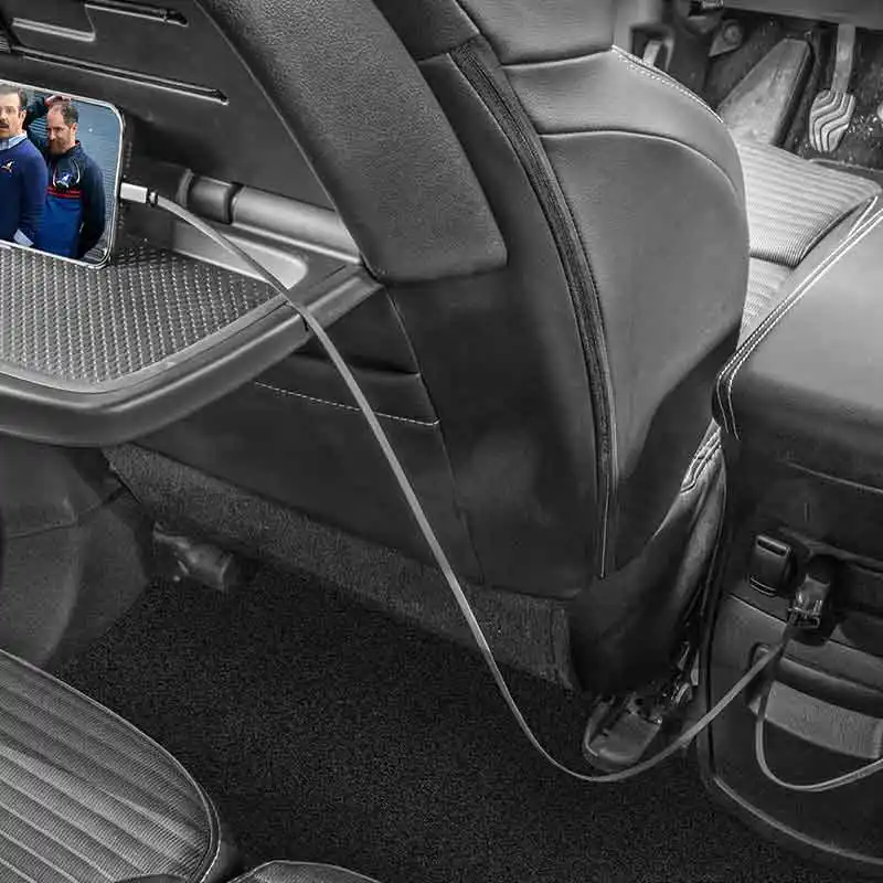 ရက်ရောသော 80 စင်တီမီတာ ရှည်သော ကေဘယ်သည် ကားအများစု၏ နောက်ထိုင်ခုံများမှပင် စက်ပစ္စည်းအသုံးပြုမှုကို အဆင်ပြေစေပါသည်။