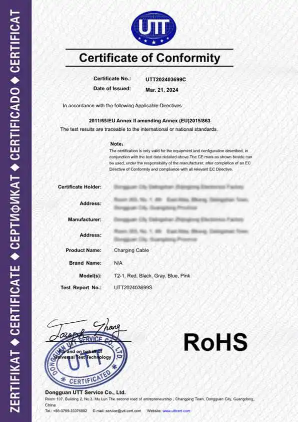ဘေးကင်းရေး လက်မှတ်CE နှင့် RoHS စံနှုန်းများကို အပြည့်အဝလိုက်နာသည်။